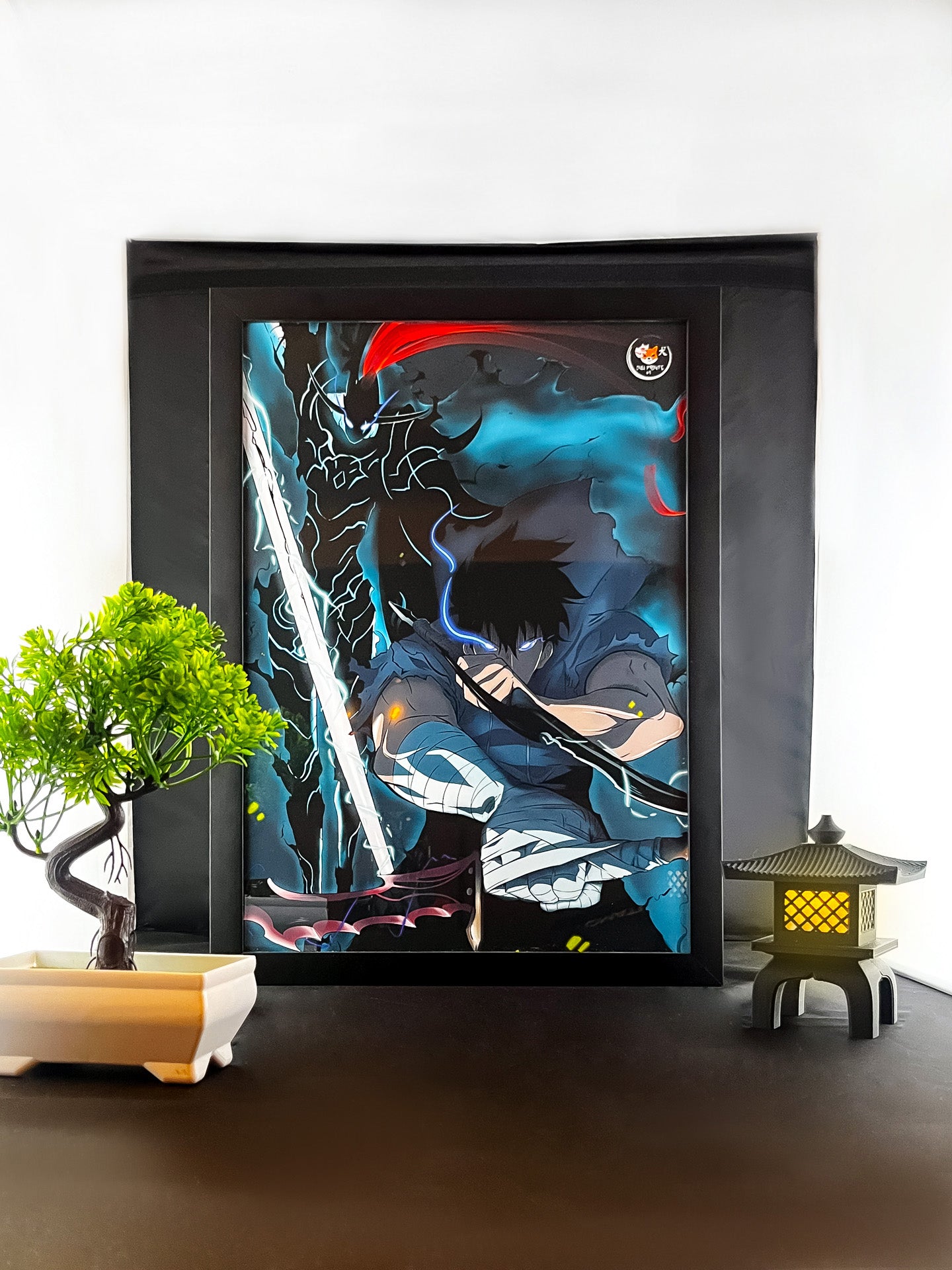- Design Único: Captura a essência e a intensidade de Sung Jinwoo e Igris, trazendo inspiração e poder a qualquer ambiente.